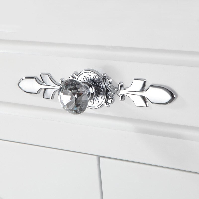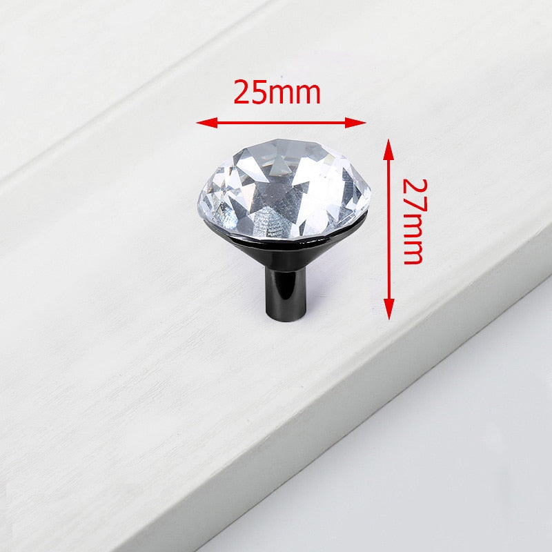 With a modern and luxurious design, these crystal handles come in clear crystal that beautifully catches and reflects the light. You can choose from different base colors, including silver, gold, or black to match your existing decor or create a stunning contrast.