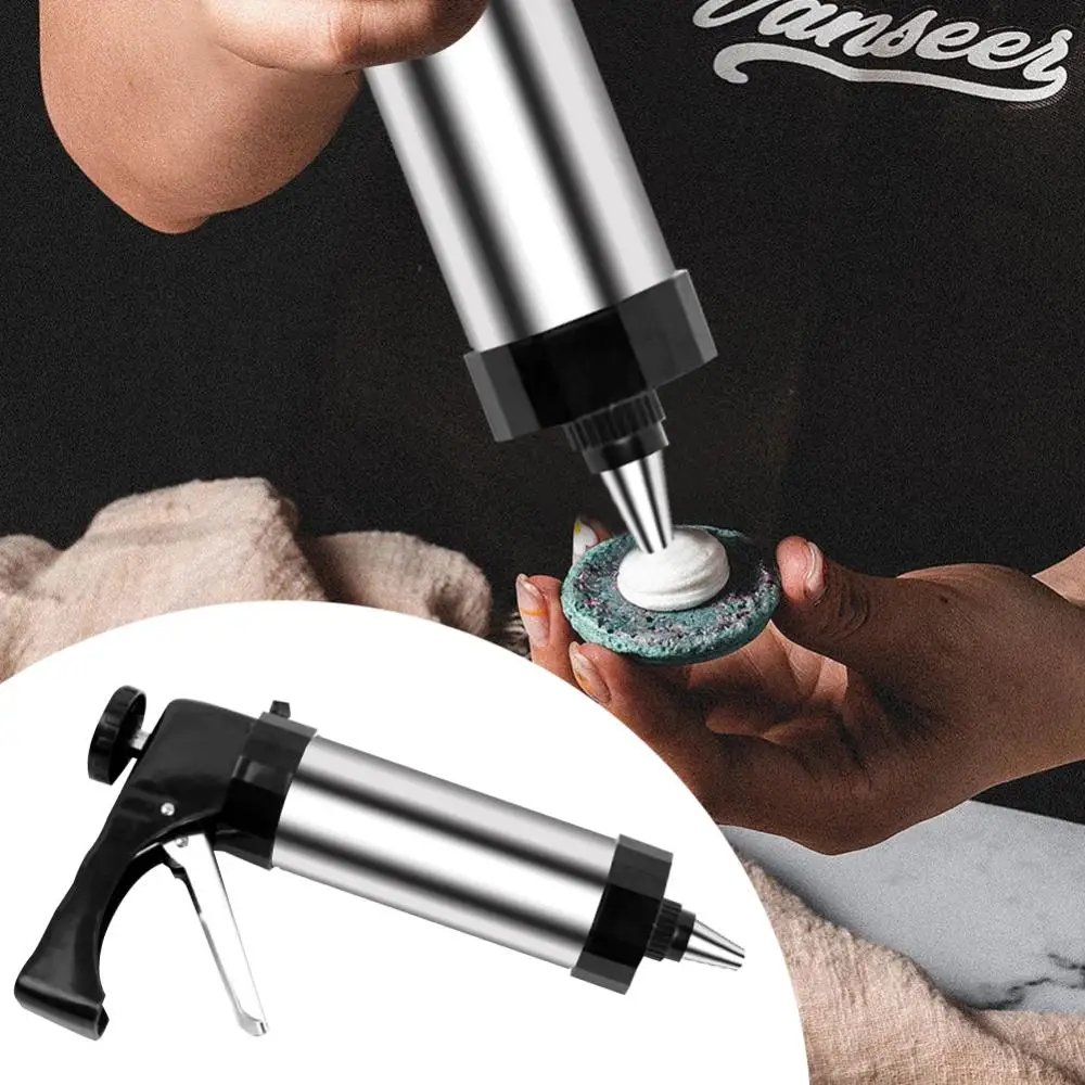 Transform your kitchen into a bakery with our DIY Cookie Press Maker Machine Gun. Crafted from sleek stainless steel, this innovative tool is not just for making cookies; it's a work of culinary art!