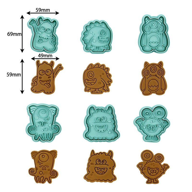- Monstrous Cookie Cutter Bonus: As a special Halloween treat, this package includes 6pcs of Monster Cartoon Biscuit Moulds with 3D Monster Shape Cookie Cutters, all made from food-grade plastic. Your Halloween baking arsenal is complete!