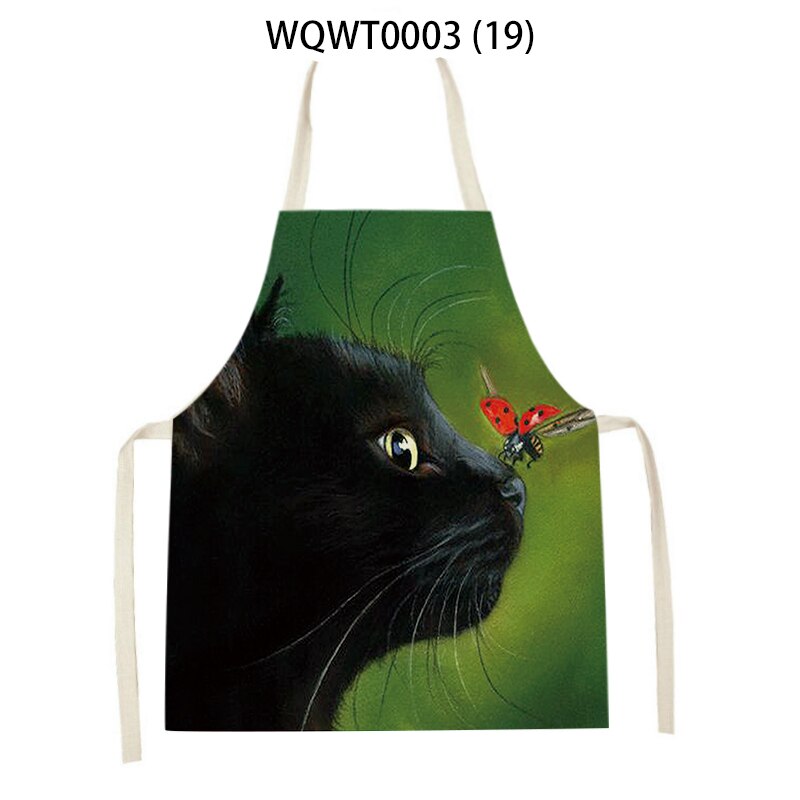 This sleeveless apron is designed to make your kitchen experience more enjoyable. The cartoon cute cat black printed pattern adds a touch of whimsy, making it a perfect choice for home cooking, baking, and more.