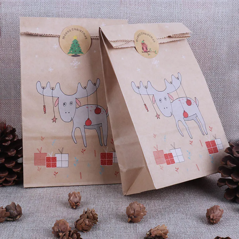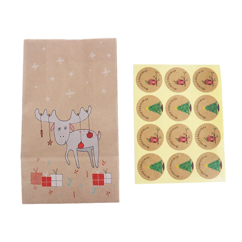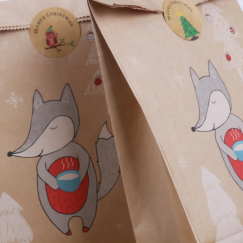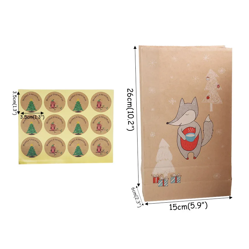 Celebrate the holiday season with our 12/24pcs Christmas Kraft Paper Gift Bags. Adorned with whimsical fox and elk prints, these party favor packing pouches add a touch of festive charm to your gift-giving. Each bag comes with Xmas stickers for that extra dash of holiday spirit, making your presents stand out in style.