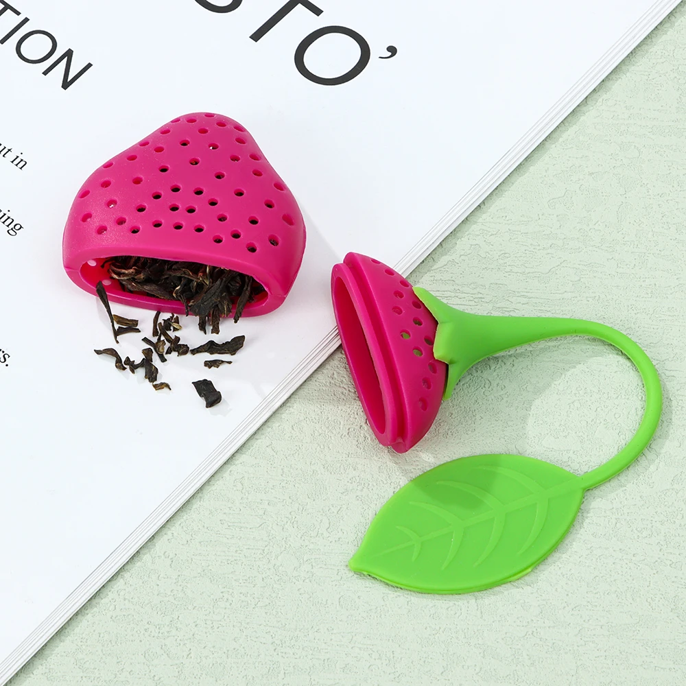 Elevate your tea experience with the Tea Infuser Stainless Steel Filter Leaf Teamaker. This creative tea sieve, adorned with a silicone strawberry handle, adds a touch of whimsy to your teatime. Made from high-quality silicone, available in vibrant colors including yellow, red, green, purple, and pink.