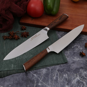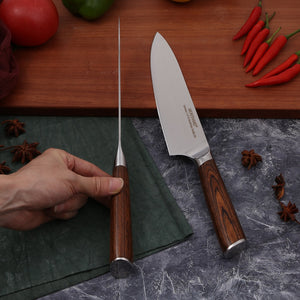 Overall, our High Carbon Steel Chef Knives Set is the perfect investment for anyone who wants to up their cooking game. With its premium materials, sharp blades, and stylish design, this set is a must-have for any serious cook. Whether you're a beginner or a pro, these knives are sure to become your go-to tools in the kitchen.