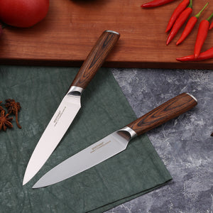 The ergonomic handles are made of comfortable and durable Pakkawood, making them easy to grip and use. They also provide a balance of weight that allows for comfortable and efficient use, reducing strain on your hands and wrists.