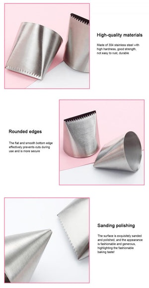 The large size of these piping tips also means you can decorate cakes and desserts quickly and efficiently, making them perfect for professional bakers or for those who want to create a show-stopping dessert without spending hours on decorating.