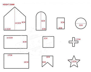 Elevate your holiday baking with our Stainless Steel Christmas House Cookie Mold. This delightful mold set includes 10 charming house molds, 8 classic cookie molds, and a festive Xmas Tree mold for creating edible masterpieces that capture the spirit of the season.