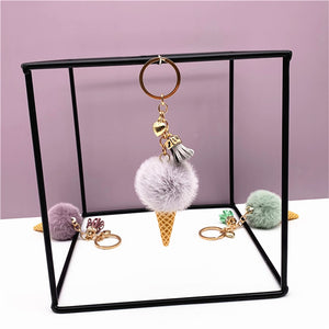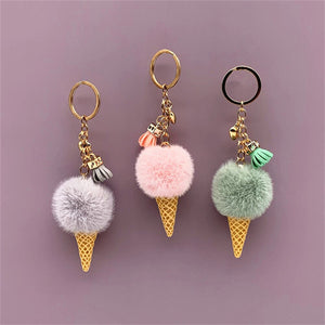 This Fashion Cute Mini Ice Cream Keychain features a delightful design, combining a cute ice cream cone with a fluffy pom-pom tassel. It's a fun and stylish accessory that adds a pop of sweetness to your keys or bag.
