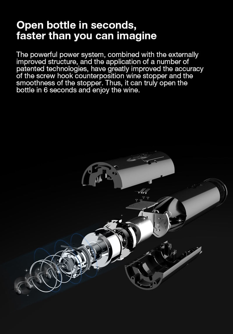 - Opens a bottle of wine in just 6 - 8 seconds