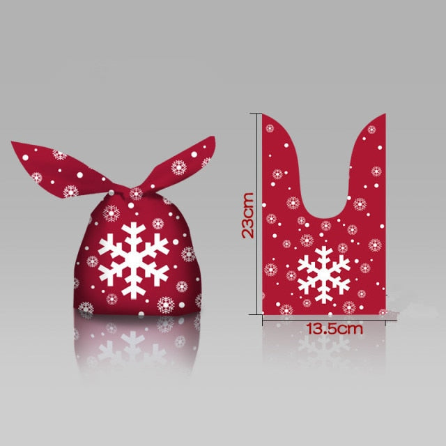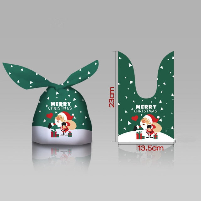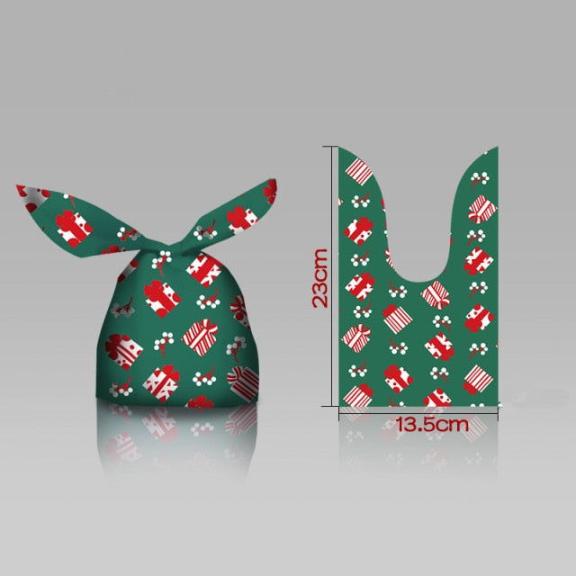 - Product: Christmas bag - Material: Plastic - Size: 23X15CM - Quantity: 10PCS - Color: As pictured - Use: Perfect for adding a touch of Christmas cheer to your tableware and home decor.