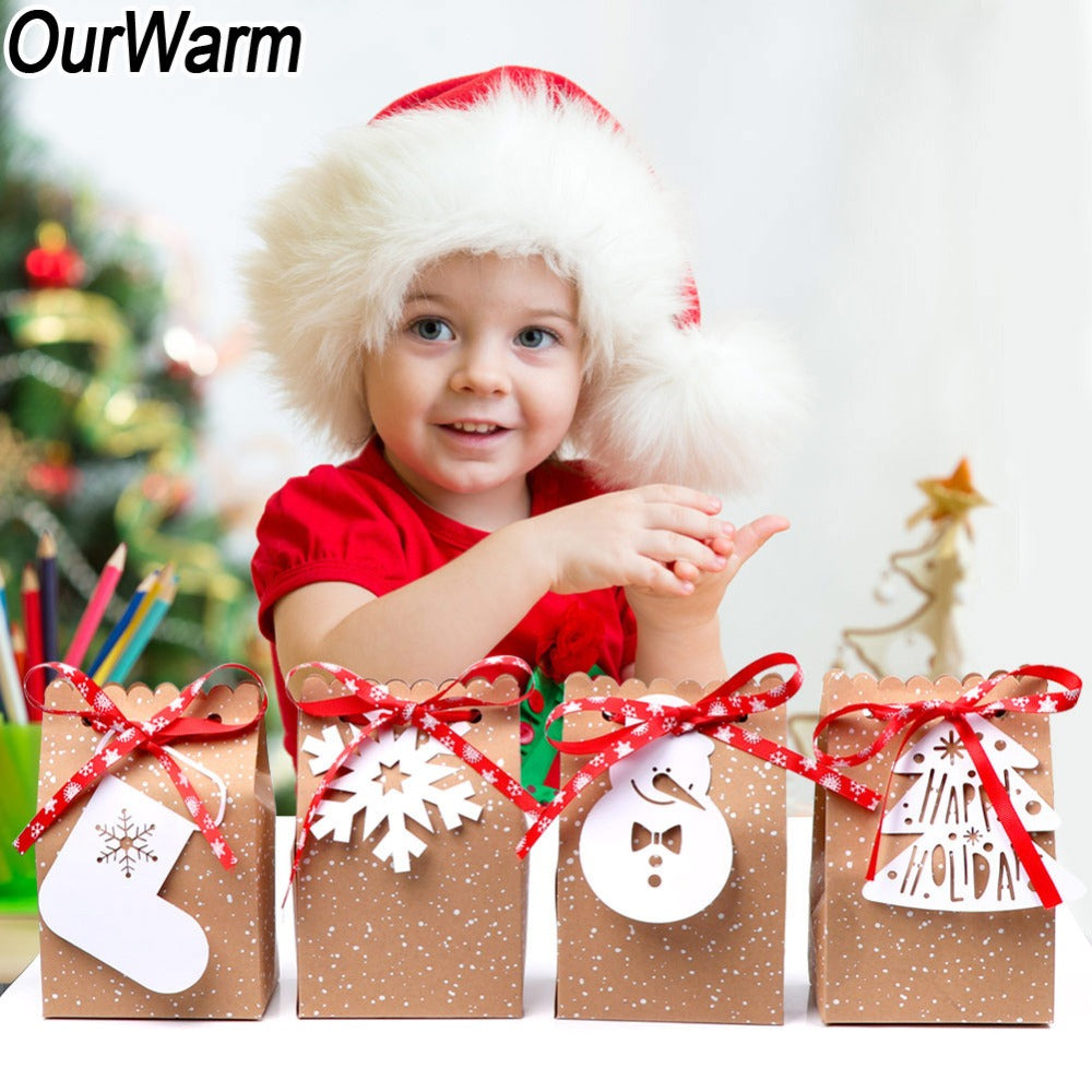 Festive Delight: 4 Pc Christmas Kraft Paper Bags with White Tags