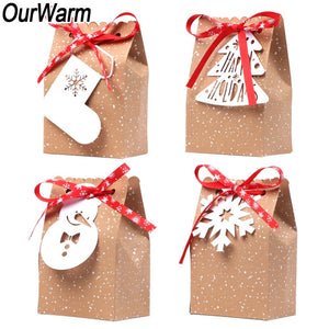 Festive Delight: 4 Pc Christmas Kraft Paper Bags with White Tags