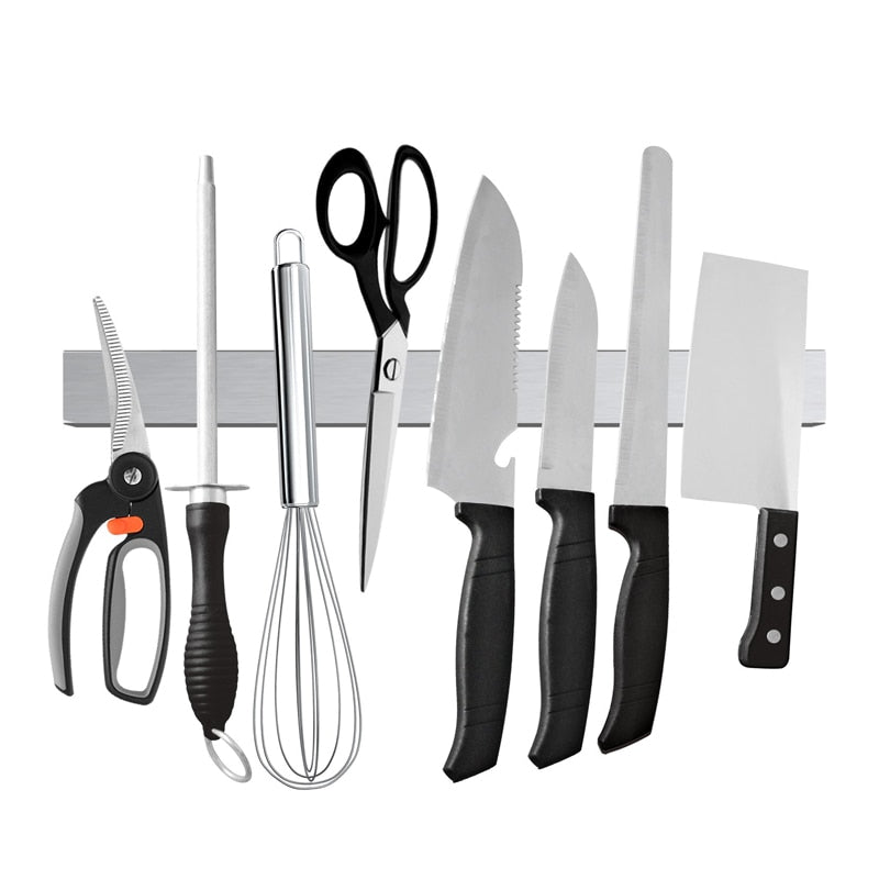 Introducing the ultimate kitchen organizer – our Stainless Steel Magnetic Knife Holder. Crafted from robust stainless steel, this magnetic knife strip is the perfect solution for keeping your knives and metal kitchen tools easily accessible. No more fumbling through drawers or cluttered countertops – elevate your kitchen space with this sleek and functional accessory.