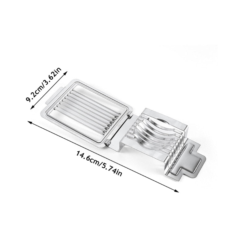 A stainless steel egg slicer is a practical and efficient kitchen tool designed for slicing boiled eggs into uniform pieces. Made of high-quality stainless steel, it is durable, rust-resistant and easy to clean. The slicer features a sturdy base plate with a wire mesh that securely holds the egg in place and a top plate with several wires that cross over the mesh to make precise cuts. Simply place the boiled egg on the wire mesh, press down on the top plate and voila, you have perfectly sliced eggs in no time. This egg slicer is not only perfect for everyday use, but also ideal for entertaining, making it a great addition to any kitchen.