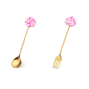 Cute Rainbow Lollipop Donut Macaron Dessert Stainless Steel Spoon Fruit Forks