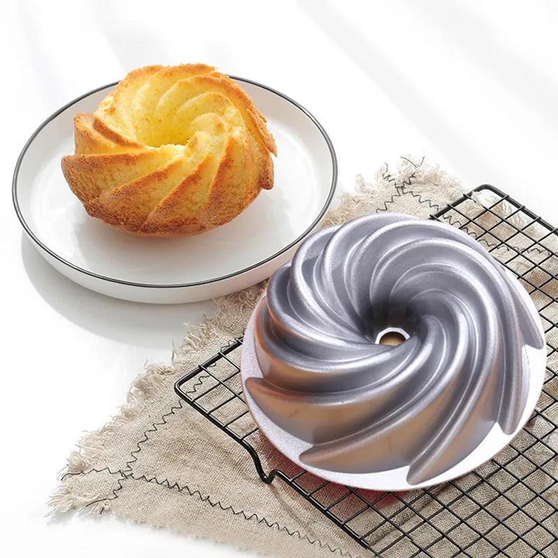 Elevate your baking with the Thickened 10-Inch Swirl Rose Heart Aluminum Cake Mold. This non-stick cake pan, crafted from durable aluminum, is perfect for creating stunning pound cakes and more.