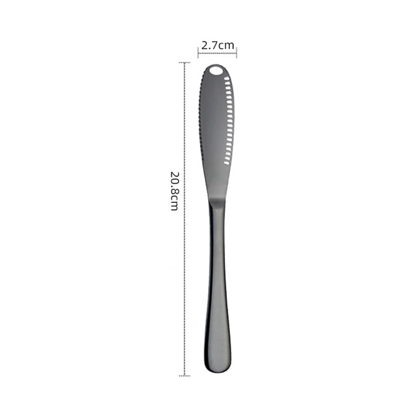 Elevate your culinary adventures with this multifunctional stainless steel butter knife. Whether you're spreading butter on your morning toast, slicing cheese for a gourmet platter, or serving dessert with finesse, this knife has you covered. It's not just a kitchen tool; it's a kitchen essential. Add this magic wand to your culinary arsenal and enjoy the difference in style and convenience.